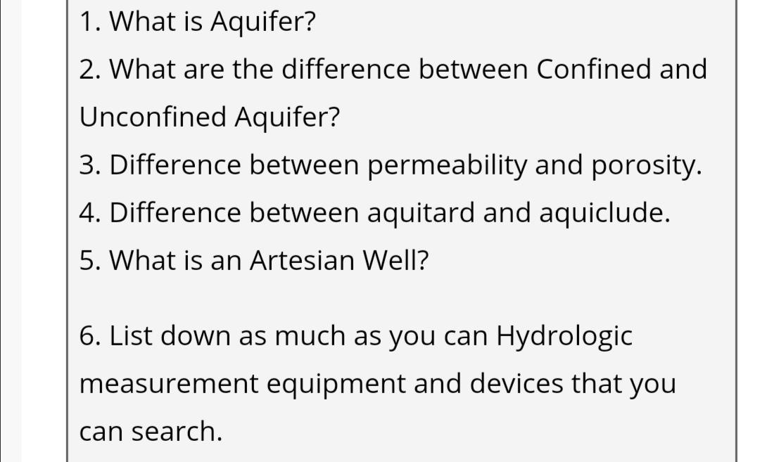 Solved 1 What Is Aquifer 2 What Are The Difference Chegg Com